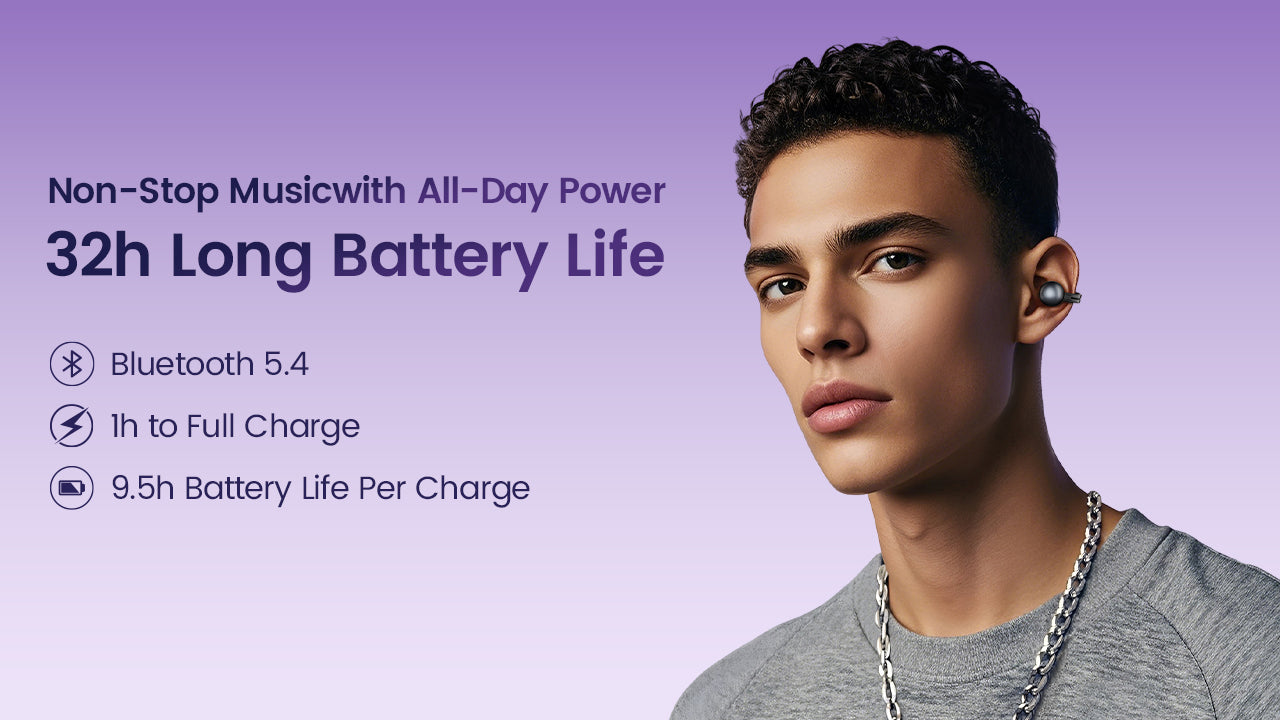 All-Day Battery: Up to 32 hours of playback with the charging case, plus a 1-hour quick charge for hours of music on the go.