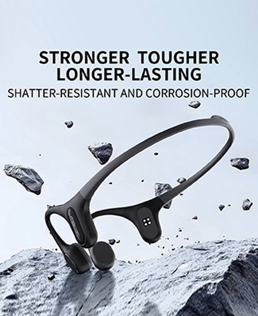 Crafted with a flexible titanium alloy frame, these bone conduction headphones deliver a secure, comfortable fit that moves with you. Whether you’re sprinting, cycling, or diving, they stay perfectly in place—so the rhythm never stops, even underwater.